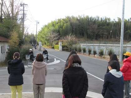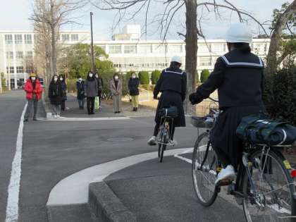 あいさつをしながら子どもたちの登校の様子も見てもらいます。