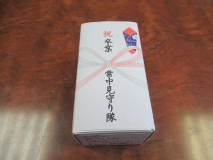 本日、卒業生全員に見守り隊の皆さんからのプレゼントをお渡ししました。
