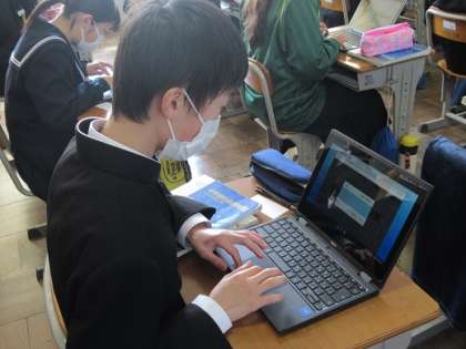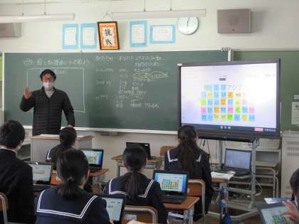 3/15 行きたい国とその理由は? 公開日 2021/03/15 更新日 2021/03/15 校長より 1年F組の社会です。 chromebookを使っての授業です。 先生から「行きたい国とその理由」の課題が出されると、子どもたちはすぐに入力します。 結果がすぐに電子黒板に映し出されます。 いろいろな先生が授業を見て使い方を勉強しています。 いいね(0)