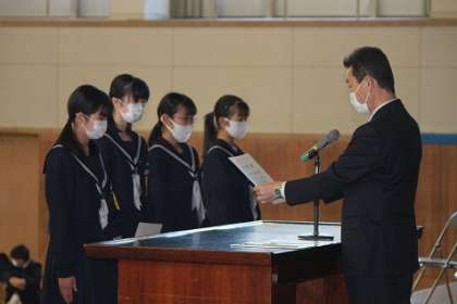 修了式の後、生徒会任命式を行いました。 令和3年度の前期の常中を頼みます!