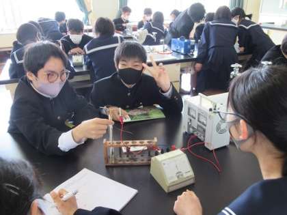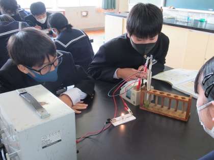 4/19 電流は流れるか? 公開日 2021/04/19 更新日 2021/04/19 校長より 3年6組の理科です。 水溶液に電流は流れるのかを実験しました。 4種類の水溶液に順番に電流を流します。 豆電球が点灯すると電流が流れている証拠です。 3年生になって初めての実験です。 うまくいったかな? いいね(0)