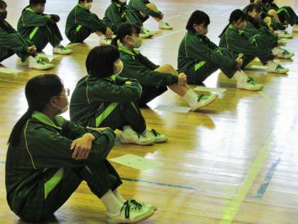 4/19 ピシッと 公開日 2021/04/19 更新日 2021/04/19 校長より 1年4組の女子体育です。 1年生は7クラスなので、通常は2クラス一緒ですが4組だけは単独での授業です。 先生の話を聞く姿勢がいいですね! いいね(0)