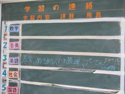 明日の英語の持ち物が書いてあります。