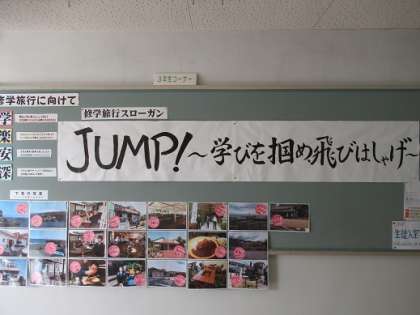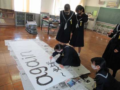 4/22 お見事! 公開日 2021/04/22 更新日 2021/04/22 校長より 3年生の女子生徒です。 学年スローガンを毛筆で書いていました。 とても達筆です。 字が上手なのはうらやましいです。 お見事です! (下)すでに完成した修学旅行のスローガン いいね(0)