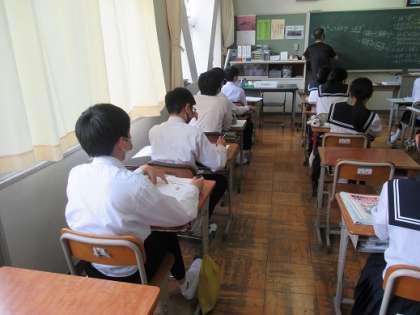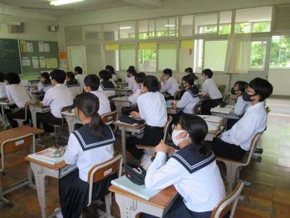 3年6組です。 みごとに全員が白い制服です。 今日は暑い!