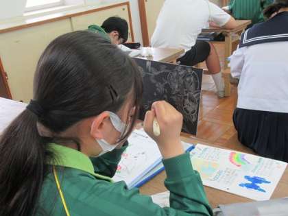 5/28 削る作業 公開日 2021/05/28 更新日 2021/05/28 校長より 2年5組の美術です。 アートグラスの制作です。 今日は彫刻刀で削る作業です。 ガリガリガリ・・・。 細かな線で形を表します。 すこしずつできてきたよ。 いいね(0)