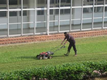 I先生が中庭の芝生を刈ってくれました。