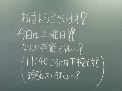 5/29 今日は土曜日! 公開日 2021/05/29 更新日 2021/05/29 校長より あるクラスの朝の黒板です。 「今日は土曜日!なんか新鮮ですね〜!」 子どもたちも先生もですね。 いいね(0)