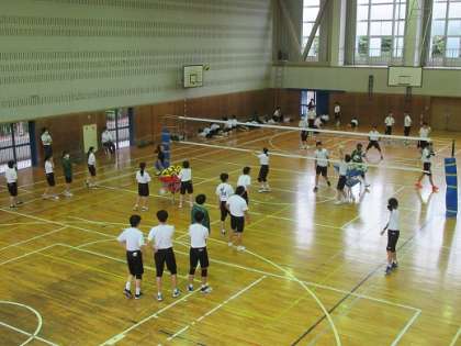 (上)バレー部 スパイク練習の真っ最中です。
