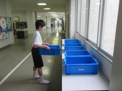 (上)日直さんがSTを終えて集配BOXを返しに来ました。