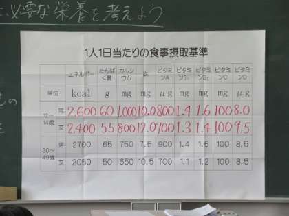 中学生に必要な栄養を学んでいました。