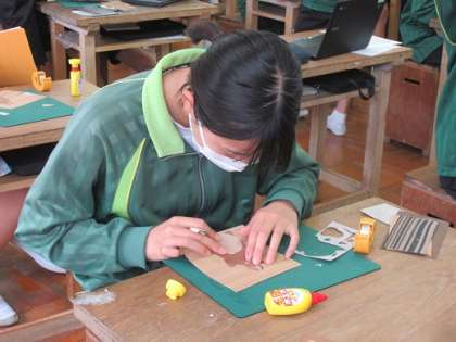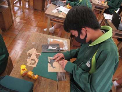 6/11 寄せ木モザイク 公開日 2021/06/11 更新日 2021/06/11 校長より 3年4組の美術です。 寄せ木モザイクの製作です。 今日はシートに転写した下絵をカッティングしました。 だんだん絵が浮かび上がってきます。 完成が楽しみです! いいね(0)