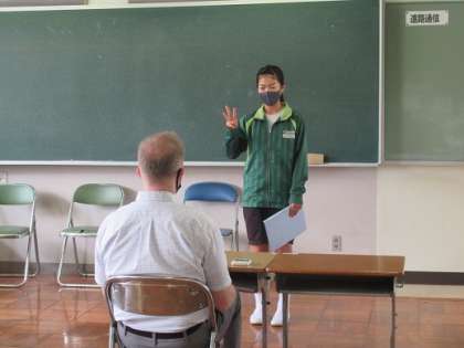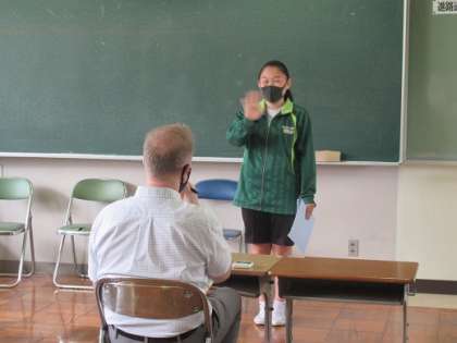 6/15 自己紹介 公開日 2021/06/15 更新日 2021/06/15 校長より 3年2組の英語です。 マーク先生に英語で自己紹介をします。 緊張するだろうな? 身振り手振りをつけて、笑顔で話す姿はたいしたものです。 いいね(0)