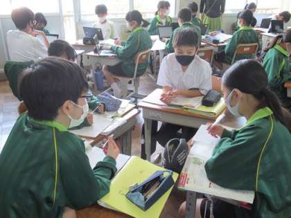 6/17 マーク先生への質問 公開日 2021/06/17 更新日 2021/06/17 校長より 1年7組の英語です。 ALTのマーク先生への質問を考えていました。 次の時間に質問するそうです。 班でちゃんとまとめることができたでしょうか? いいね(0)