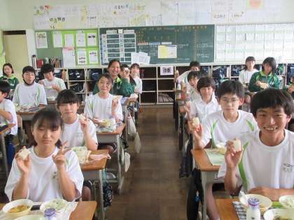 6/18 1の6給食訪問 公開日 2021/06/18 更新日 2021/06/18 校長より 1年6組に給食訪問しました。 マスクを外していい笑顔!(写真がボケてごめんなさい) Q:給食以外でういろを食べたことがある人? はい:15人 いいえ:18人 やはり食べたことがない人は多いです。 いいね(0)