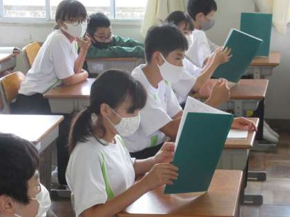 通知表をそっと見ます。 ドキドキの瞬間です。