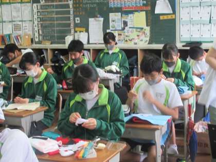 9/2 幼児のおもちゃ作り 公開日 2021/09/02 更新日 2021/09/02 校長より 2年4組の家庭科です。 1学期からの続きで、幼児のおもちゃ作りをしました。 少しずつ形ができてきました。 どんなかわいいおもちゃが完成するでしょうか? いいね(0)