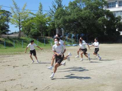 9/27 男女混合リレー 公開日 2021/09/27 更新日 2021/09/27 校長より 3年5・6組の体育です。 男女混合200mリレーです。 男女が力を合わせて走る姿はとてもいいです。 いいね(0)