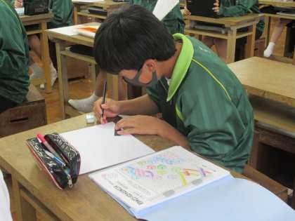 10/1 下絵描き 公開日 2021/10/01 更新日 2021/10/01 校長より 2年3組の美術です。 立体感のある平面構成図を描いています。 今日は方眼紙に描いた下絵をボード紙に描きます。 ちょっと慎重になります。 どきどき・・・。 いいね(0)
