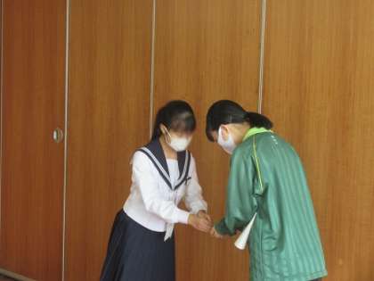 10/11 バッジの引き継ぎ 公開日 2021/10/11 更新日 2021/10/11 校長より 前期生徒会役員から後期生徒会役員へバッジの引き継ぎです。 前期の皆さん、ご苦労様でした! 後期の皆さん、期待しています! いいね(0)