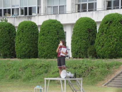 学年練習では3年生の先生が200人を動かします。