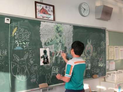 朝早く、メッセージや絵を描く先生。 子どもたちにはきっと先生の思いは伝わります。