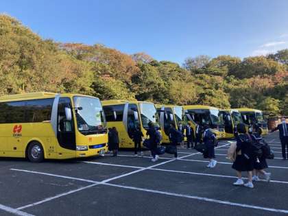 バスの色は黄色。 よく目立ちます。 間違えない黄色はありがたいです。 iPhoneから送信
