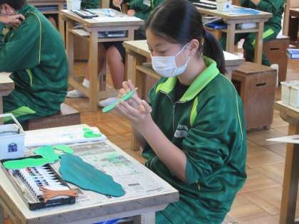 11/12 彩色 公開日 2021/11/12 更新日 2021/11/12 校長より 1年2組の美術です。 半立体構成作品の彩色です。 みんなとても丁寧に色をぬっています。 できあがりが楽しみです。 いいね(0)