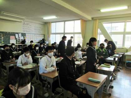 11/15 後期三役任命2 公開日 2021/11/15 更新日 2021/11/15 校長より 代表生徒以外の学級三役は、その場に立ちました。 朝会の後、各教室で任命状を渡してもらいました。 いいね(0)