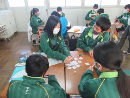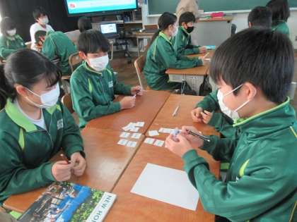 11/18 単語カード 公開日 2021/11/18 更新日 2021/11/18 校長より 1年3組の英語です。 カードをひいて、そこに書かれている単語を英語で答えます。 「う〜ん・・・。」 悩んだら教科書ですぐに調べていました。 いいね! いいね(0)