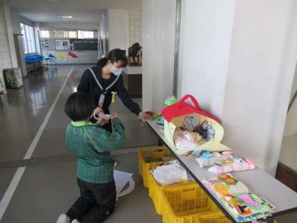 2年生の家庭科「幼児のおもちゃ」の優秀作品の展示が完了しました。