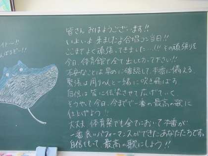 今朝の黒板です。 先生の思いがいっぱい! 子どもたちは受け止めて欲しい!