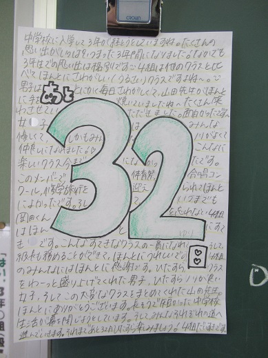1/14 泣けてくるわ〜 公開日 2022/01/14 更新日 2022/01/14 校長より 3年4組の卒業カレンダーです。 子どもたちが割り当てられた日のカレンダーを作っています。 読むと泣けてくるようなカレンダーがいっぱい。 それぞれの思いがある。 あと32日! いいね(0)