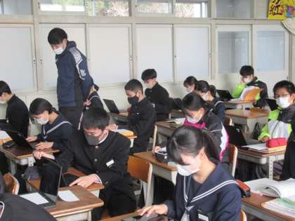 1/17 プレゼン作成 公開日 2022/01/17 更新日 2022/01/17 校長より 2年5組の英語です。 各自の考えたテーマで学級にアンケートをとりました。 それを発表するためのプレゼン資料を作成しています。 もちろん英語での発表です。 発表の準備だけでも大変ですが、英語での発表となるとなおさらです。 仕事をするようになったら、英語でプレゼンすることがあるかもしれません。 いいね(0)