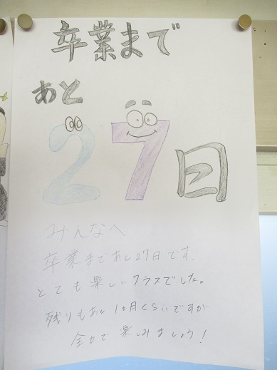 3年2組の卒業カレンダーです。 あと27日かあ〜。