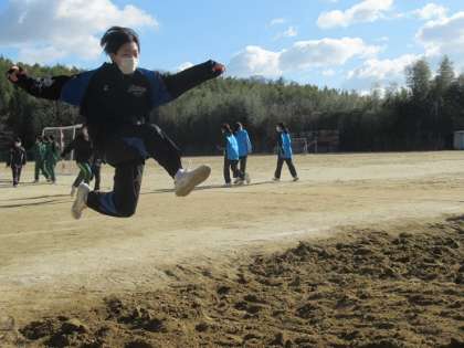 1/21 明日へジャンプ! 公開日 2022/01/21 更新日 2022/01/21 校長より 1年3・5組の女子体育です。 走り幅跳びの授業です。 スピードをつけながら助走します。 そして、ジャンプ! コロナ禍でも子どもたちは負けません。 明日へジャンプです! いいね(0)