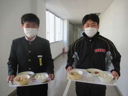 1/28 昼の放送 公開日 2022/01/28 更新日 2022/01/28 校長より 昼の放送の様子です。 みんなしっかりと責任を果たしてくれています。 (上)3の2の男の子です。 放送当番の給食を持ってきてくれました。 (中)今週の放送当番は3の2です。 中学最後の当番かな? (下)給食週間の献立を紹介する給食委員です。 ご苦労さん! いいね(0)