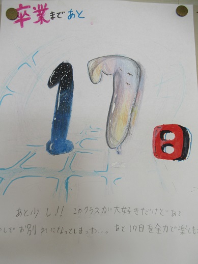 3年生の卒業カレンダーです。 あと17日。 それだけしかないのです。