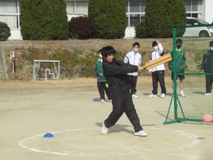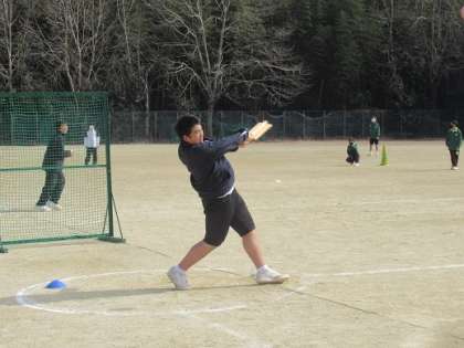 フルスイング! 男の子は力がある。 ボールは遠くに飛んでいきます。