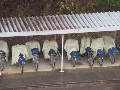 今日は朝から雨です。 雨ガッパを上手に干してあります。 帰りまでに乾くといいな。