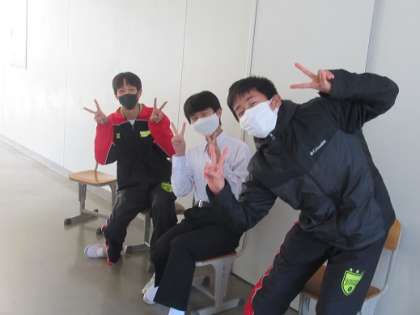 3年4組の男子です。 面接練習前のワンショットです。 元気いいなあ〜。