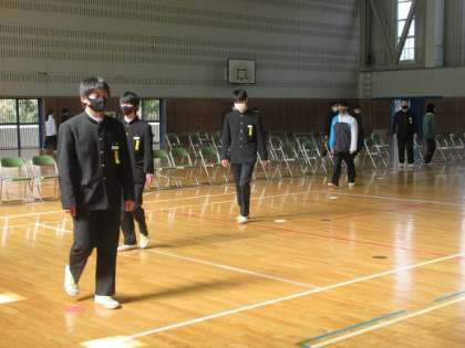 入場の練習です。 真剣そのもの! いい顔つきです!