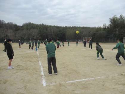 男女関係なく遊びます。 1年生の時から男女分け隔てなく活動できました。 いい光景です。