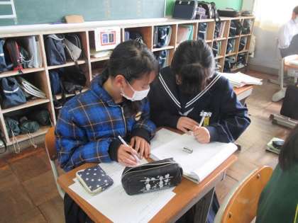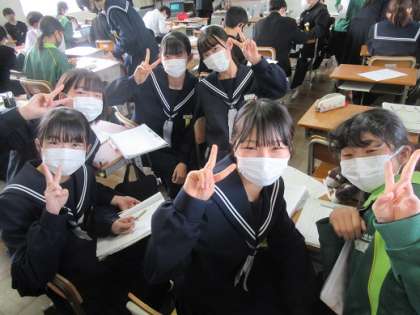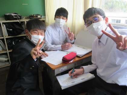 3/17 教え愛 公開日 2022/03/17 更新日 2022/03/17 校長より 1年6組の数学です。 数学の復習問題を友達と教え合いながらやりました。 「教え合い」だけど「教え愛」のように感じます。 いいね(0)