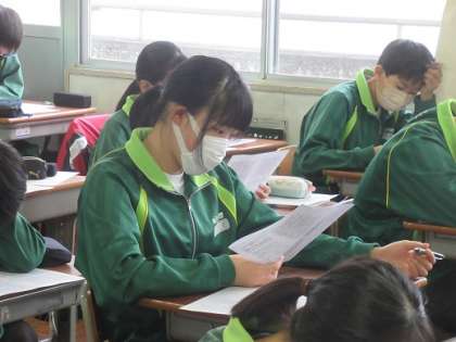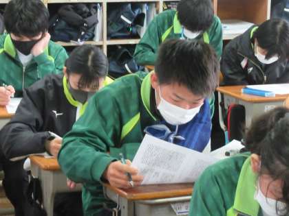 3/22 チャレンジ! 公開日 2022/03/22 更新日 2022/03/22 校長より 2年3組の国語です。 公立高校の入試問題にチャレンジしています。 1年後、君たちはどこに進むのだろうか? いいね(0)