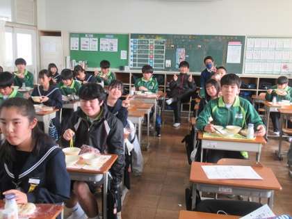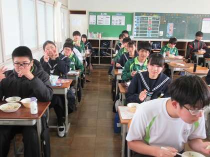 3/23 ラスト給食 2の1 公開日 2022/03/23 更新日 2022/03/23 校長より 2年1組のラスト給食です。 級訓は「勇猛果敢」です。 そんな級訓どおりに一年間何事にも挑戦してきたクラスです。 給食にも勇猛果敢です。 いいね(0)