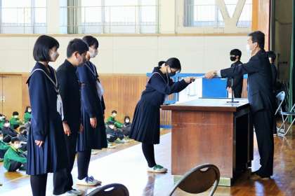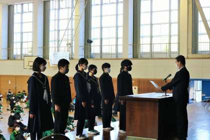 令和4年度前期生徒会任命式を行いました。 7名の役員の皆さん、常中を頼みます!