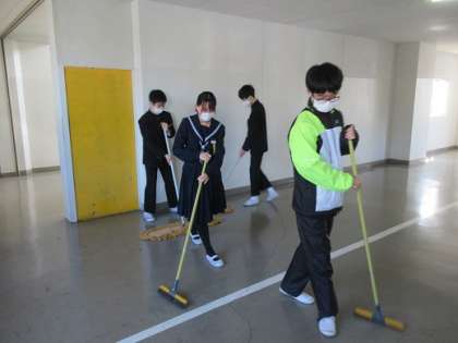 3/24 大掃除1 公開日 2022/03/24 更新日 2022/03/24 校長より 大掃除の様子です。 (上)3人で並んでモップがけ。 (中)階段をぞうきんがけ。すぐ横でピース。 (下)一列に並んできれいにします。 いいね(0)