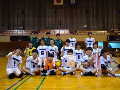 2022 05 07【グローイングカップ(バレーボール男子)】 公開日 2022/05/09 更新日 2022/05/09 校長より 優勝おめでとう。頑張りましたね。 師崎中戦で先に1セット取られたとき、選手は『まだ1セットある!』と声をかけ合ったと聞きました^^ 全てをプラスに^^ いいね(0)