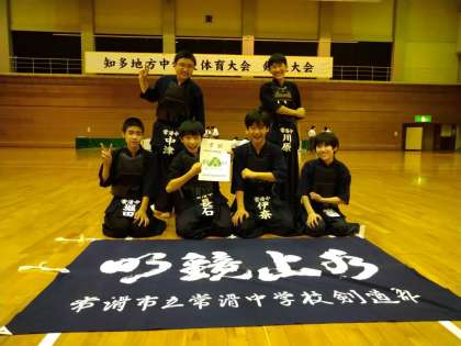 男子予選リーグ(大府北、半田)を1位通過し、決勝トーナメントに進出しました。八幡中、横須賀中に勝ちましたが、準決勝 で鬼崎中に惜敗し、3位入賞となりました。